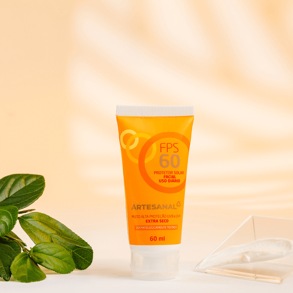 O Filtro Solar Facial FPS 60 Toque Seco Artesanal é um protetor solar com proteção completa contra os raios UVA e UVB e ideal para o uso facial no dia a dia.